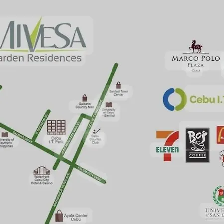 A 3 csillagos Mivesa Garden Residences Lahug Cebu hotel vendégei számára hozzáférést kínál az Ayala Center Cebu bevásárlóközpont területéhez, amely nagyjából egy 25 perces sétára található.